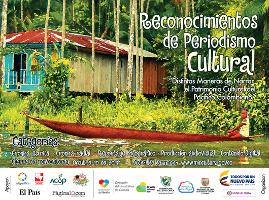 Del 13 de agosto al 10 de octubre estará abierta la convocatoria a los Reconocimientos de periodismo cultural ‘Distintas maneras de narrar el patrimonio cultural del Pacífico colombiano 2016.