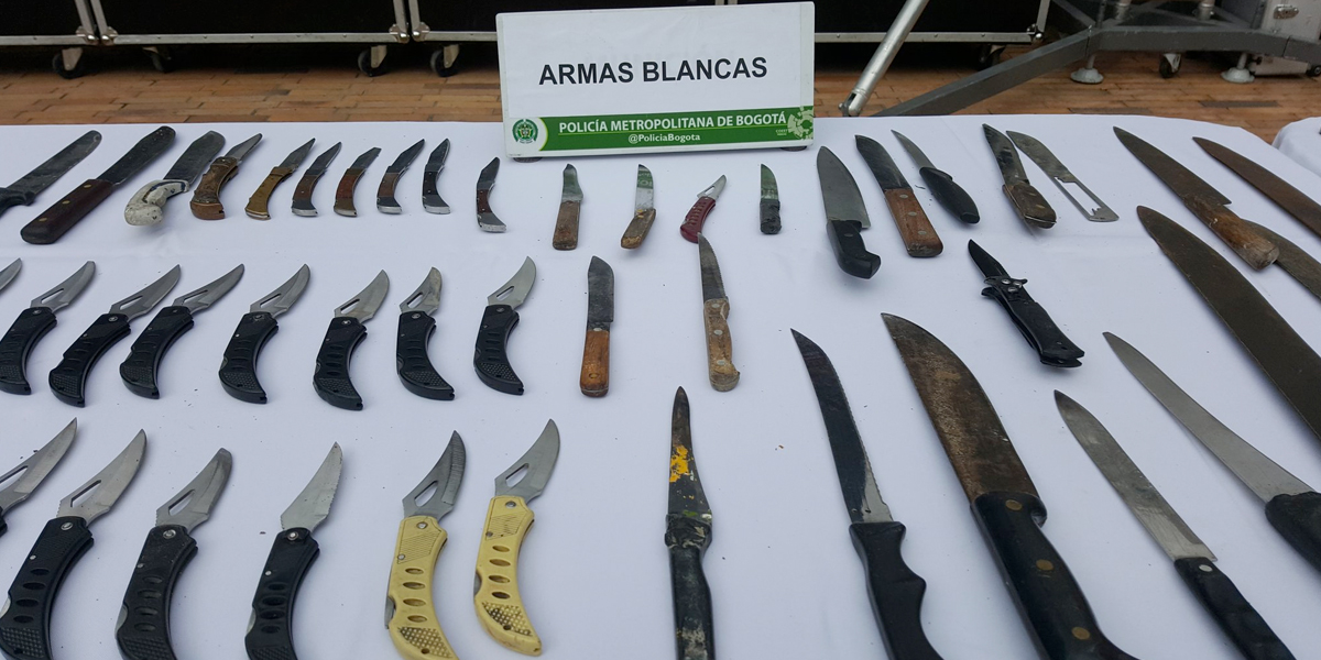 Según cifras del Distrito, el 45% de los homicidios en Bogotá ocurren con arma blanca, mientras que el 40% de los hurtos se cometen con ese tipo de elementos.