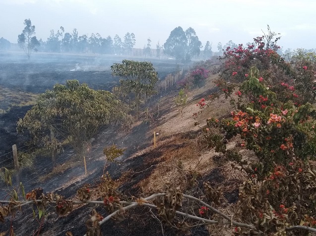 Según denuncia de la CAR, la conflagración se produjo por acción de personas desconocidas que quemaban varios metros de cable robado para extraer su cobre.