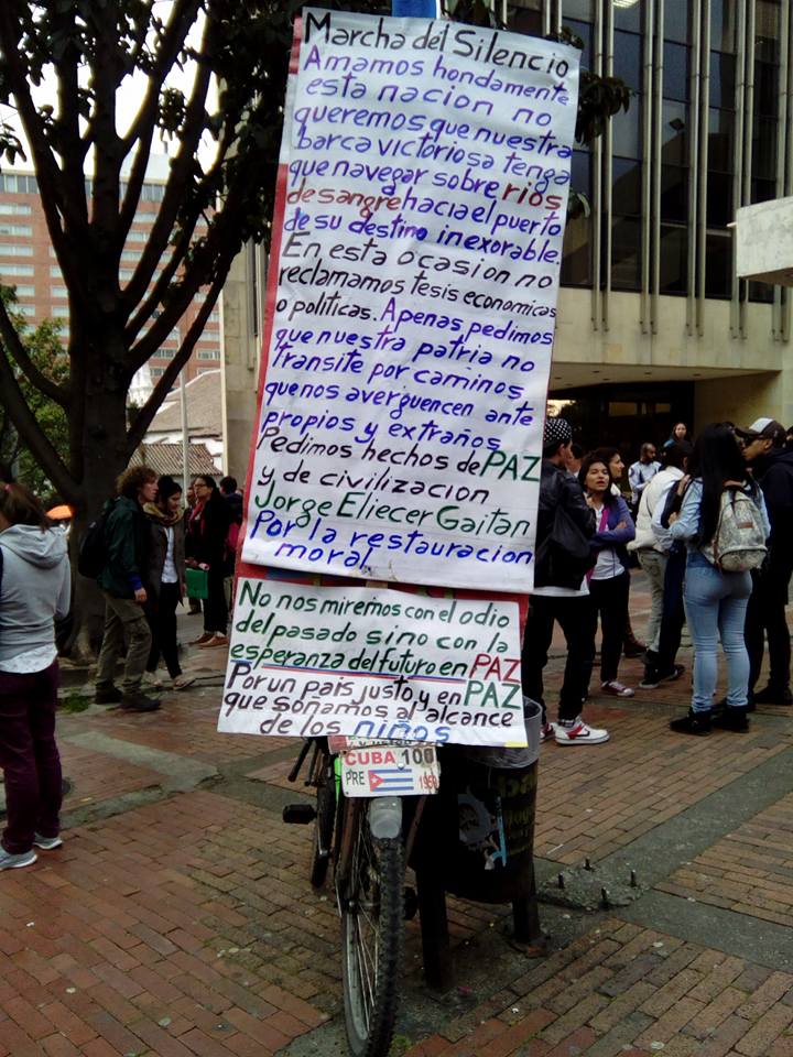 Finalmente, se leyó un comunicado con el que los jóvenes exhortan a los políticos para que, se comprometan a discutir urgentemente una solución que asegure los acuerdos de paz con las Frac. Todos regresaron a casa esperando una oportunidad para la paz, tal como lo hizo Gaitán hace 68 años.