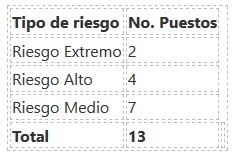 Número de puestos por tipo de riesgo.