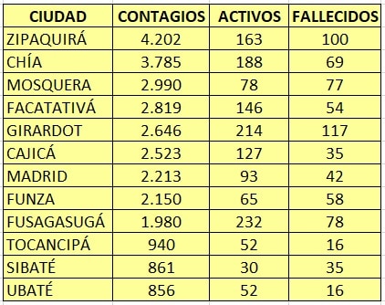 Preocupante el número de personas contagiadas en el departamento de Cundinamarca que llegó a 51.263 contagios, siendo el municipio de Soacha con una afectación alta del 100% el más afectado con 14.210 contagios. Soacha ha reportado la muerte de 391 personas, teniendo actualmente 606 casos activos y 12.913 recuperados.