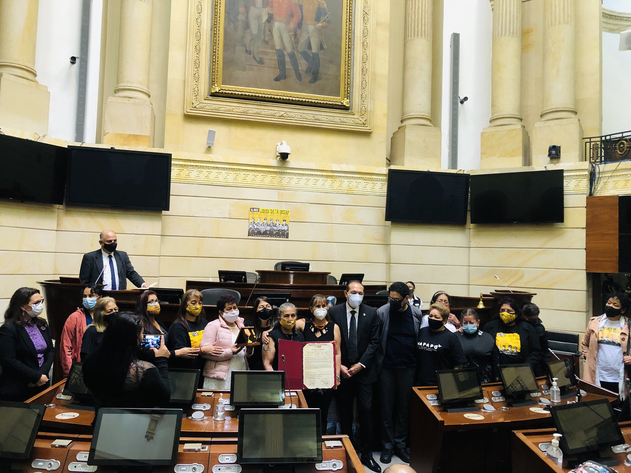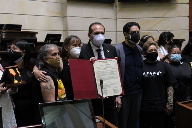 Este 8 de marzo aprovechando la celebración del Día Internacional de la Mujer, el Congreso de la República condecoró con la Orden del Congreso en el Grado de Comendador a la Fundación Madres de Falsos Positivos Soacha y Bogotá.
