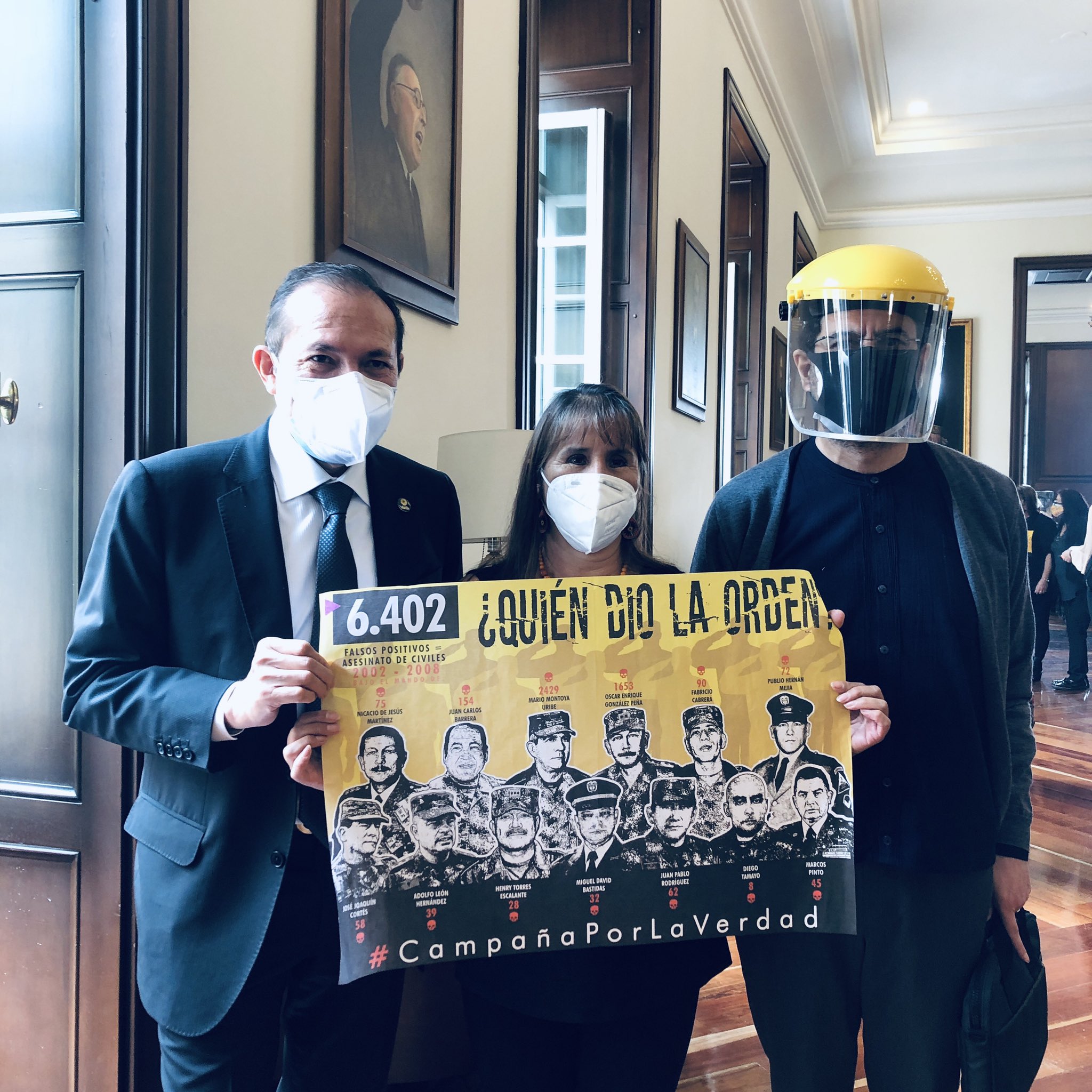 El senador del Polo Democrático Iván Cepeda Castro, a su vez precisó, que “Nos hemos convocado aquí por una doble conmemoración, hoy 8 de marzo día de la lucha de las mujeres en el mundo y el homenaje a la lucha de las mujeres con una exaltación a ellas que buscan la verdad a las seis mil 402 víctimas de estado, de los falsos positivos y no se quede en la impunidad.”