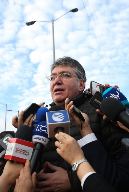 Durante la visita del ministro Cárdenas a la estación de transmilenio en San Mateo, fue recibido por el alcalde Eleázar González y la representante Betty Zorro.
