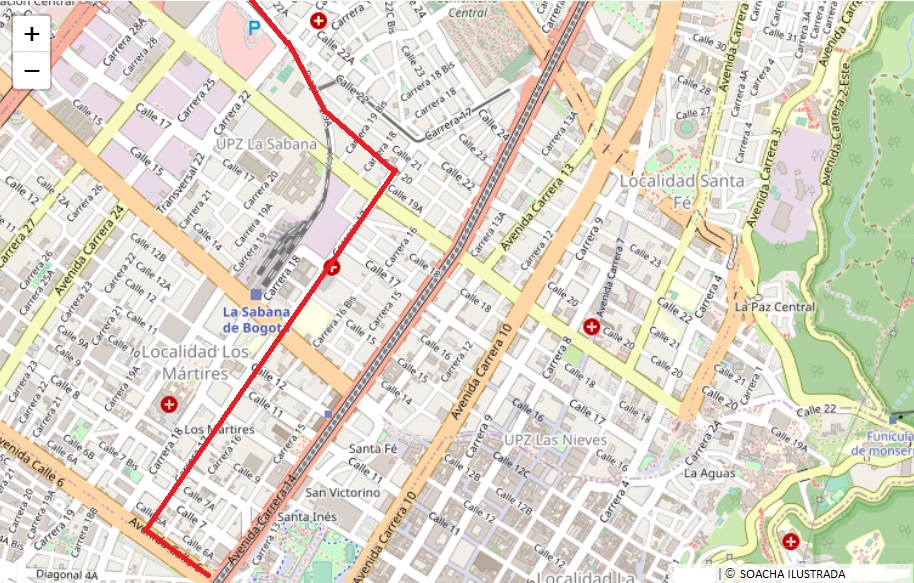 Posteriormente, toma la carrera 17 hacia el norte hasta la calle 20, y de allí sigue al occidente, donde intercepta con el Corredor Férreo de Occidente (existente), y desde ese punto su trazado discurre por la ruta mencionada, y cruza la NQS y la Av. Américas (mapa 1).