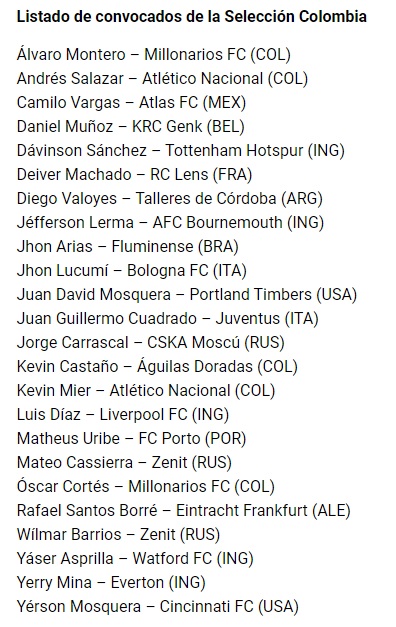 El técnico argentino Néstor Lorenzo publicó el listado oficial de los convocados de la Selección Colombia para los compromisos amistosos que se tienen programados ante Irak y Alemania durante los días 16 y 20 de junio.
