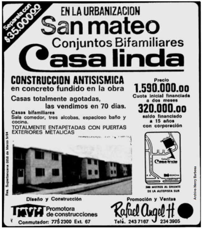 La vivienda tenía un costo de $ 1´500.000 pesos financiados a 15 años y se separaban con solamente $ 35.000 pesos.