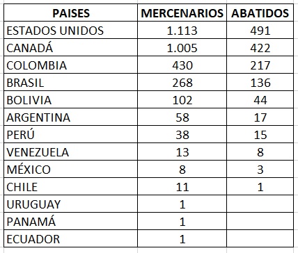 De igual manera, más del 40% de los mercenarios canadienses perdieron la vida en los combates (422 de 1005).