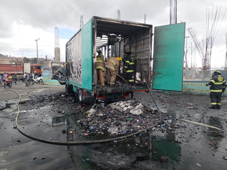 Un momento de zozobra se presentó en un sector de la autopista Sur en el municipio de Soacha, cuando explotó y posteriormente se incendió un cargamento de baterías de litio que era transportado en un vehículo tipo furgón.