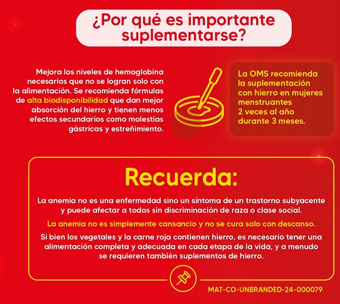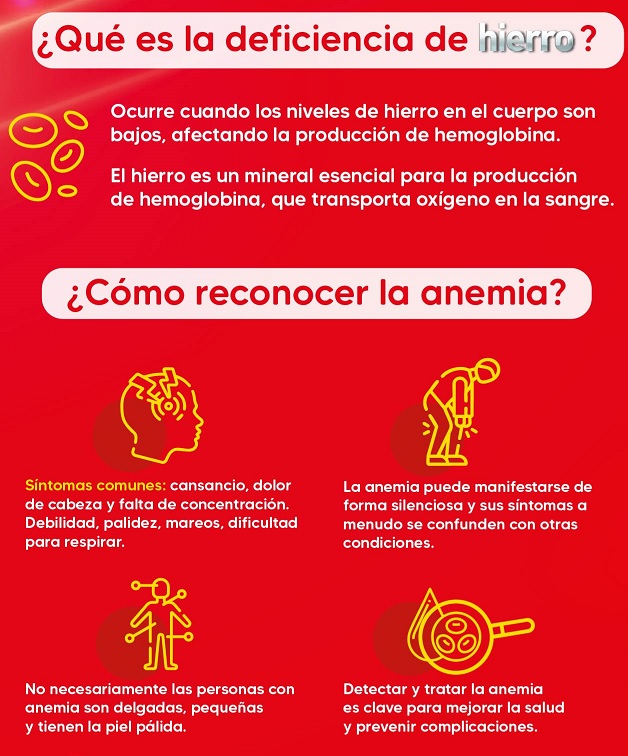 El hierro es un elemento esencial con funciones importantes como el transporte de oxígeno, la síntesis de ADN y el metabolismo muscular. La deficiencia de hierro, la causa más común de la anemia, puede tener consecuencias significativas para la salud, impactando el desarrollo cognitivo en niños, la salud reproductiva en mujeres y el bienestar general en adultos.Estas cifras subrayan la necesidad de abordar esta deficiencia nutricional, que es la más prevalente en todo el mundo y a menudo silenciosa. En días pasados, en el marco del Día Mundial del Déficit de Hierro, P&G Health -la división de salud de P&G- hizo un llamado para tomar consciencia sobre esta, identificar a tiempo sus síntomas y tomar en consideración las siguientes recomendaciones: