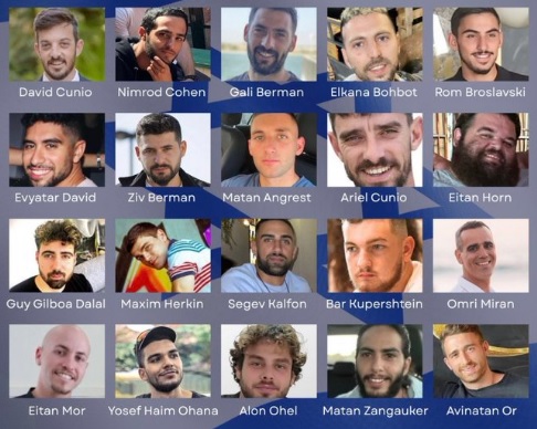 Los liberados son David Cunio, Ariel Cunio, Eitan Horn, Bar Avraham Kuperstein, Evyatar David, Yosef Haim Ohana, Segev Calfon, Avinatan Or, Elkana Buhbut, Maksim Harkin, Nimrod Cohen, Matan Tzangauker, Matan Angrest, Eitan Mor, Gali Berman, Ziv Berman, Omri Miran, Alon Ohel, Guy Gilboa-Dalal y Rom Breslavski, quienes finalmente recuperaron su libertad tras más de dos años de cautiverio.