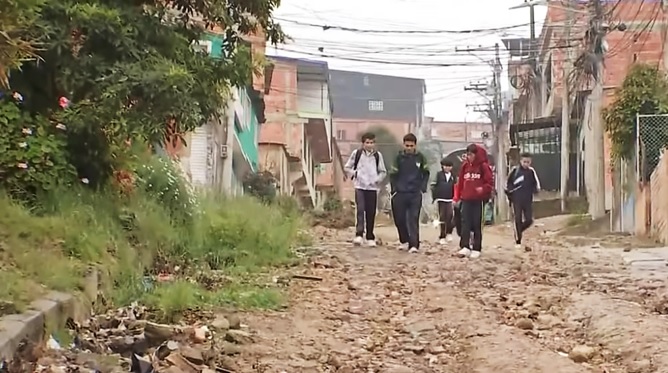 Más de 1.000 estudiantes del colegio Luis Carlos Galán, ubicado en Altos de Cazucá, comuna Cuatro de Soacha, deben caminar cada día por vías en pésimo estado, convertidas en verdaderos caminos de herradura llenos de barro, piedras y huecos. Las lluvias de los últimos días han empeorado la situación, poniendo en riesgo la seguridad de los niños y docentes.