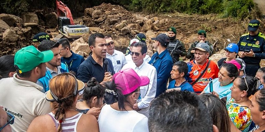 Desde este punto crítico, el mandatario departamental detalló el plan de atención a las familias damnificadas y las acciones urgentes que se adelantan en la zona norte del municipio, donde la quebrada El Hato también dejó daños considerables.