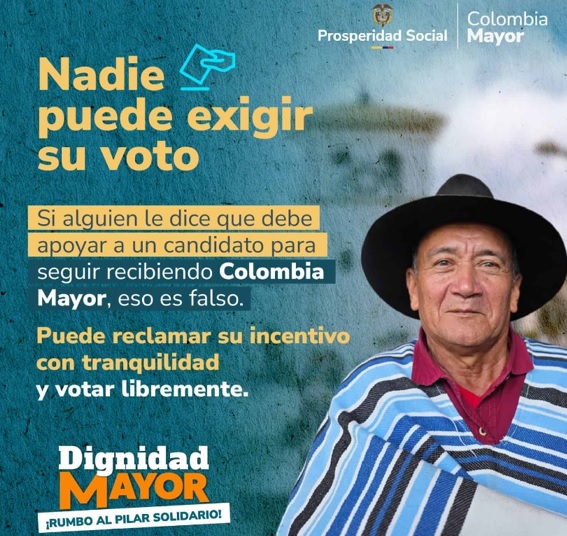 Ante la cercanía de la jornada electoral, el Departamento para la Prosperidad Social informó que implementó medidas de blindaje en los procesos de entrega de transferencias monetarias del programa Colombia Mayor, con el fin de evitar interferencias políticas y garantizar transparencia en la distribución de los recursos.